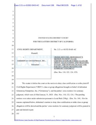Civil Rights Department v. Grimmway Enterprises Published on: October 7, 2025 A federal court issued this decision in the state’s fight over an ag employer’s workers’ comp and disability leave program. Get the full text by clicking here.